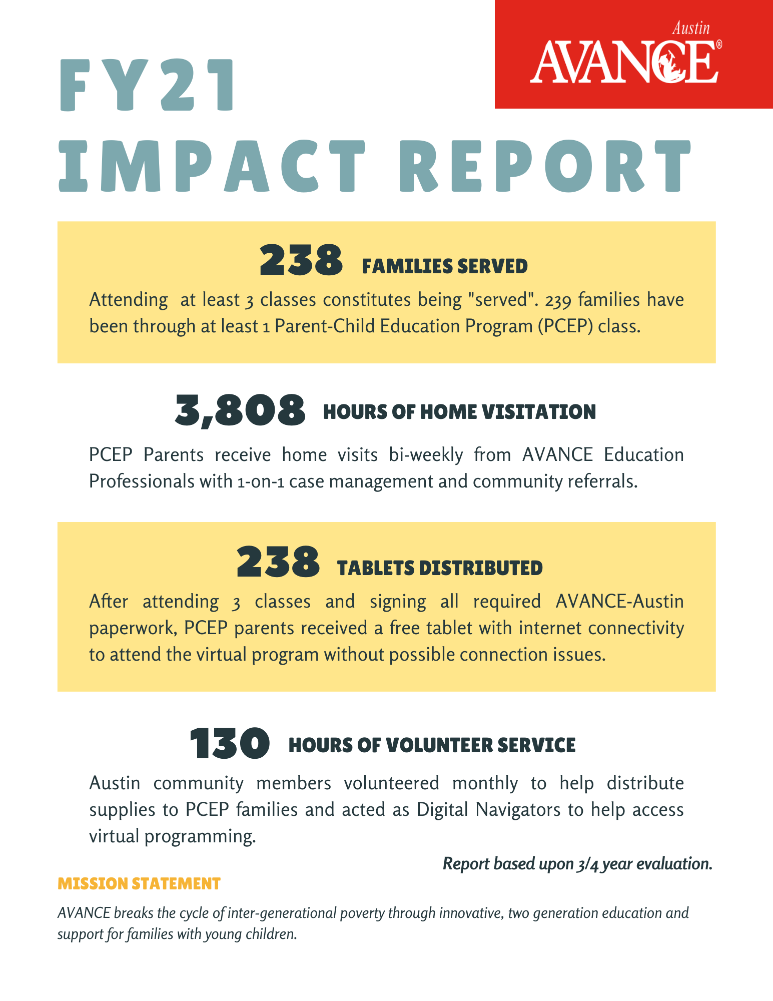 Please use the following information as you need to share the mission and vision of our organization. We empower you to invite your connections to learn about the great work YOU support and explain how AVANCE makes bigger and brighter futures!