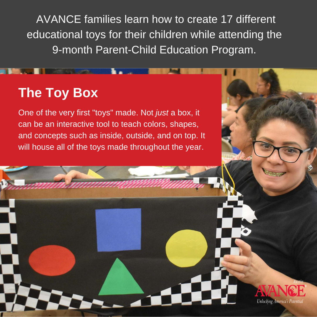 - 1 1/2 hour each week with Parenting Curriculum, Early Childhood Activities, and Toymaking Sessions for 9 months