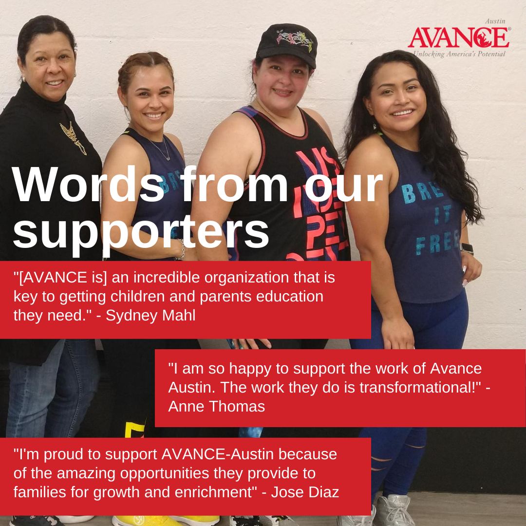 Hey friend, I’m raising money for AVANCE-Austin this month. As an active board member, I truly believe that supporting parents and children through 2-generation education will help dreams become realities for Latinx families living in poverty. It’s been an especially hard year for Spanish-speaking adults because of COVID and the recent Winter Storm. But AVANCE stepped up and ensured they did not feel isolated. Parents have been receiving food and diaper distributions, along with financial stability through gift cards since last March and will continue through May. Please help me in my endeavors to ensure AVANCE reaches even more families for the upcoming Summer Literacy and Nutrition Program. Invest in your community today by making a donation here: avanceaustin.org/support-us/donate